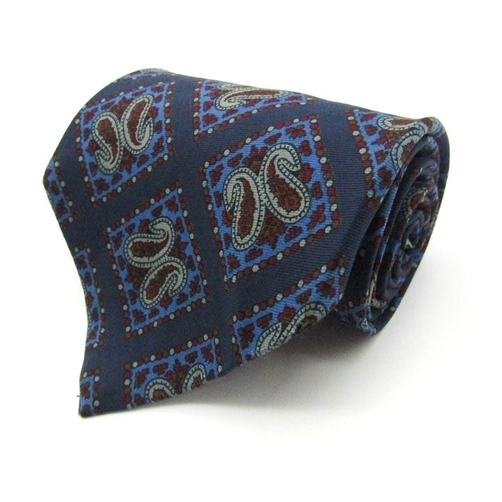 - ハロッズ ペイズリー柄 シルク 四角柄 イギリス製 ブランド ネクタイ メンズ ネイビー系 良品 Harrods