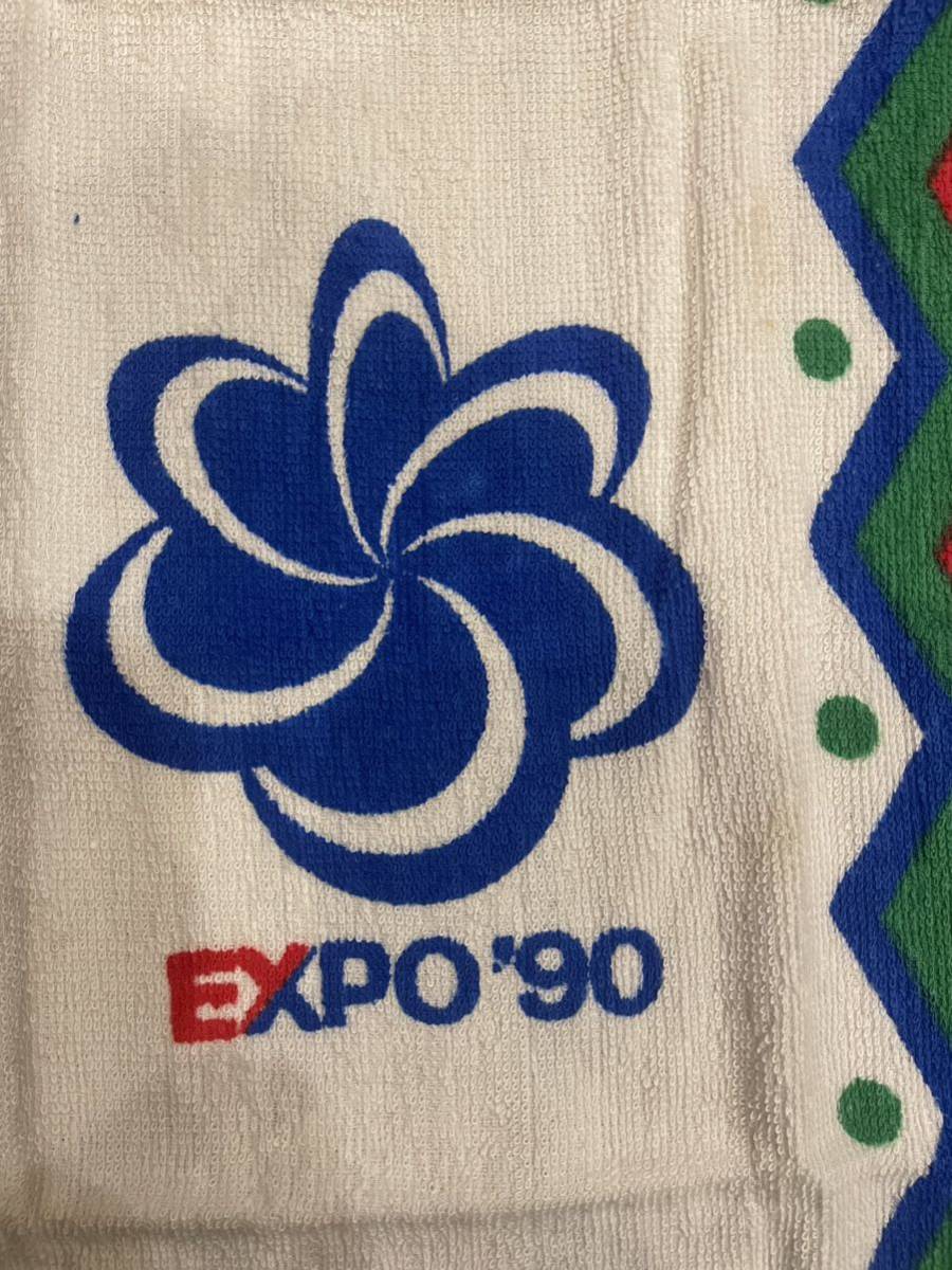 - 貴重 ! レア ! 未使用 Expo 90 Expo '90 1990 ハンド タオル ツアー グッズ 万博 花博 レトロ エクスポ ビンテージ 平成 古着