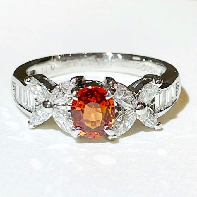 - ☆Pt900 オレンジサファイア0.788ct&ダイヤリング 指輪 鑑別書☆