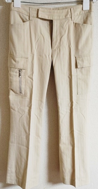 - ウエスト61㎝ 23区 長ズボン ゴルフ 白いストライプ アイボリー クリーム色 ベージュ 難有