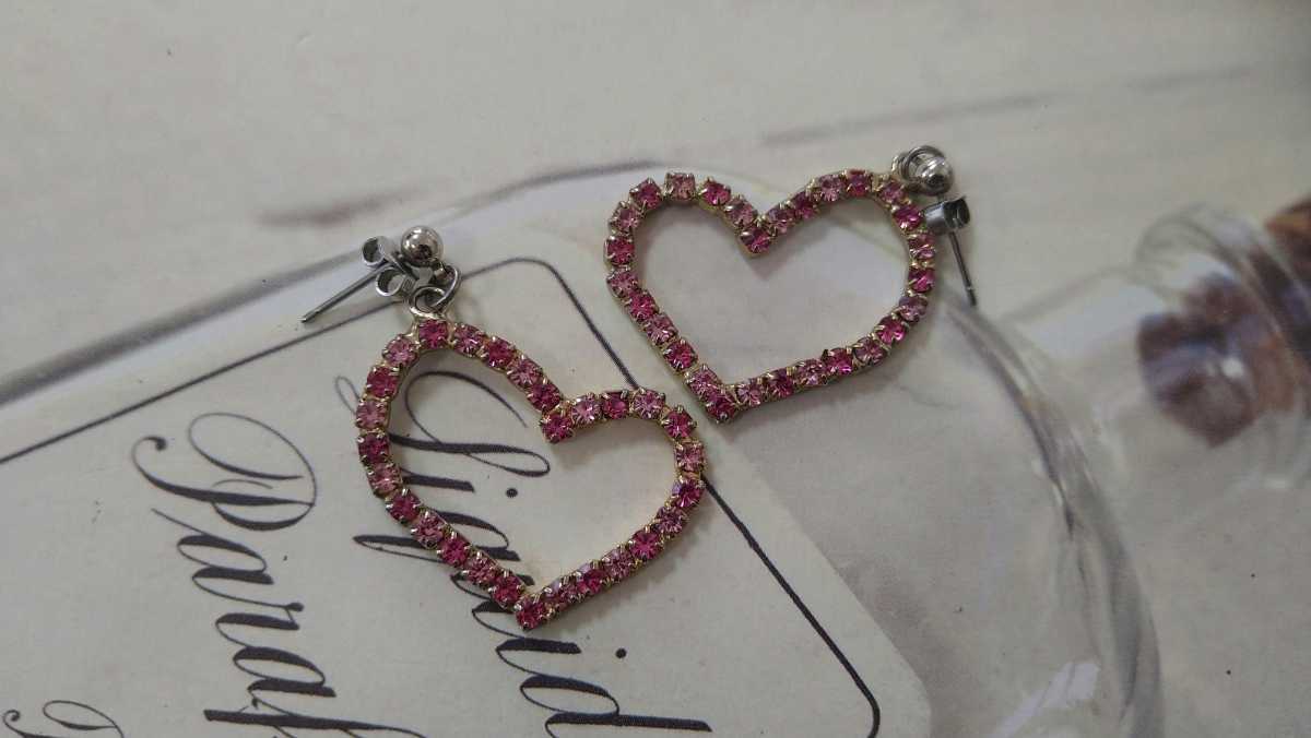- □2色のピンクラインストーン×オープンハート・揺れるピアス□