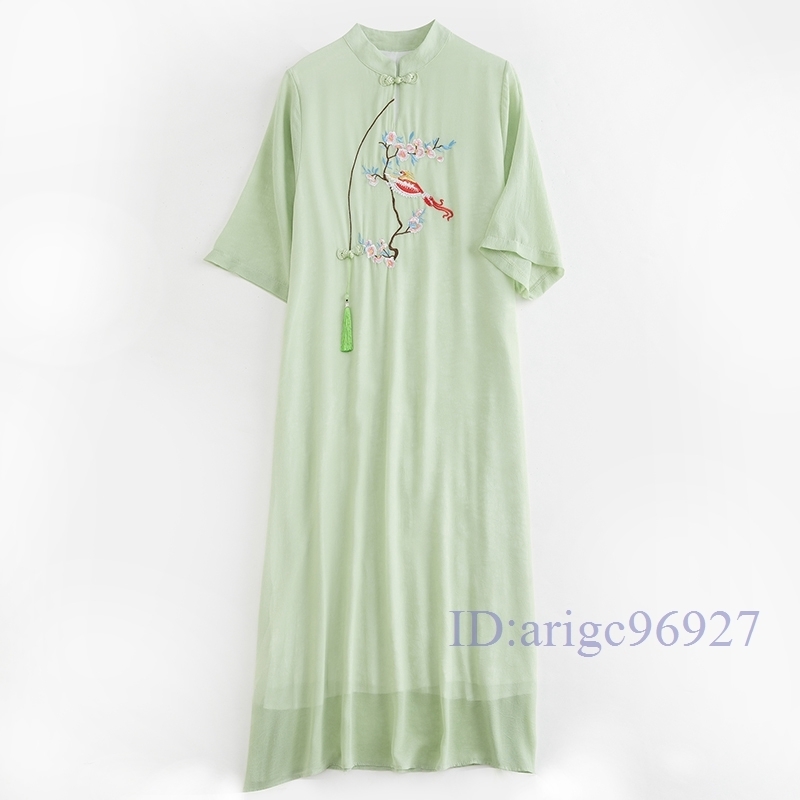 - N896★新品夏*レディース**304050代*体型カバー*きれいめ刺繍入り半袖チャイナドレス風ロングワンピースM~XXL 色