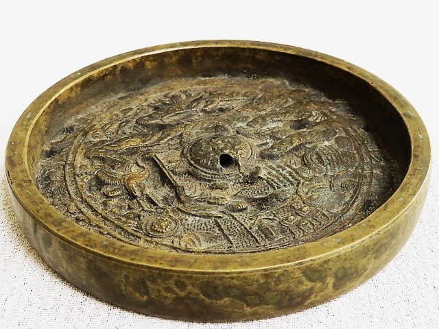 - 古鏡 古銅 円鏡 鶴亀 重さ約812g 時代 A31-0214