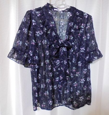 - axes femme アクシーズファム シースルー素材 バラ薔薇ローズ柄 ブラウス M