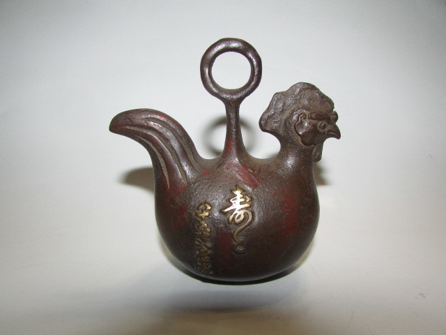 - 即決商品(会津若松・旧家・蔵出し)明治時代( 古い時代の味わいのある銅製鈴・鳳凰型・寿に福文字 )貴重・珍品