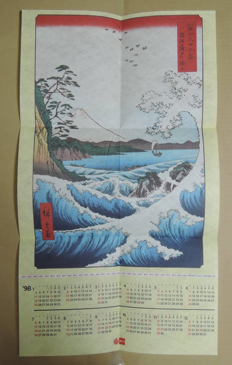 - ☆01C■宝くじ 日本画カレンダー 1998年/平成10年 安藤広重 富士三十六景「駿河薩夕の海上」■細野正信