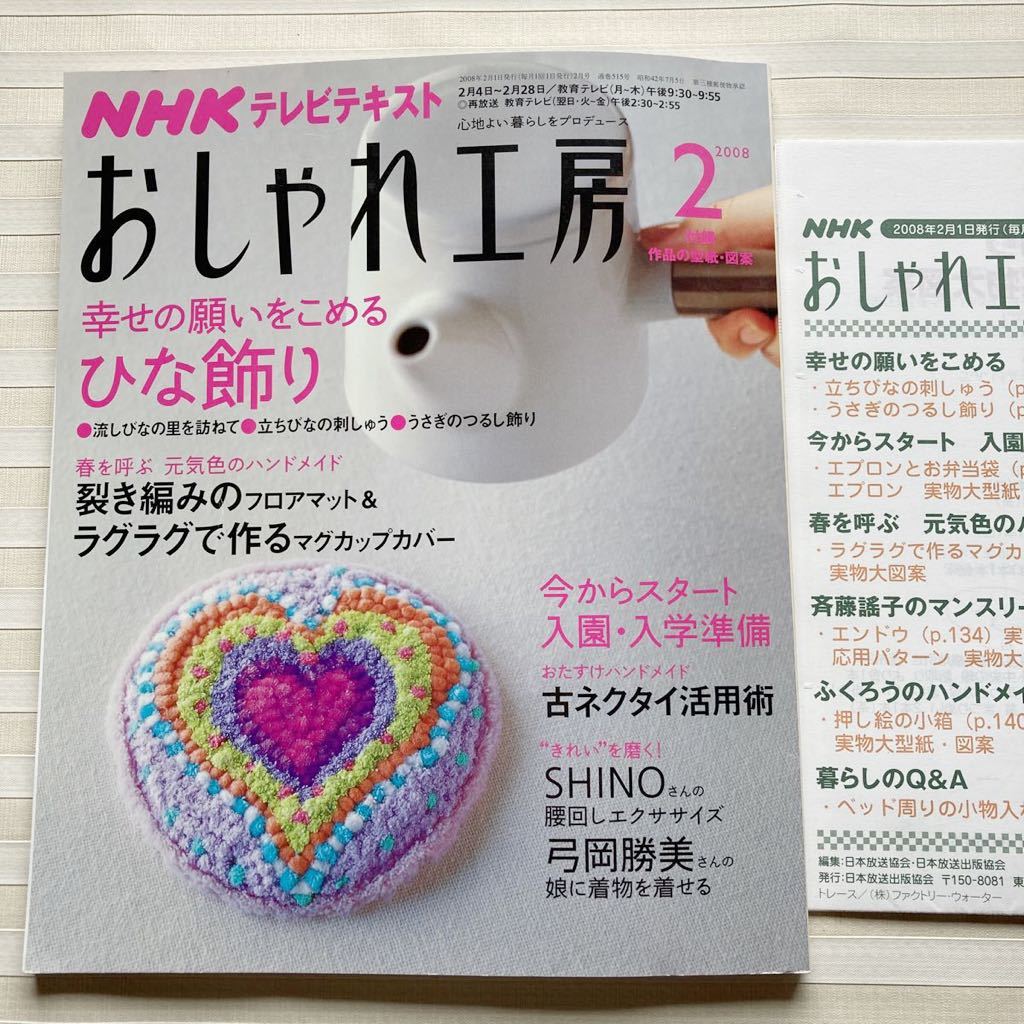 - おしゃれ工房2008/2 *立ちびな刺しゅう*うさぎのつるし飾り*入園入学子どもエプロン*スラッシュキルト*裂き編み*振袖・袴着付け □型紙付□
