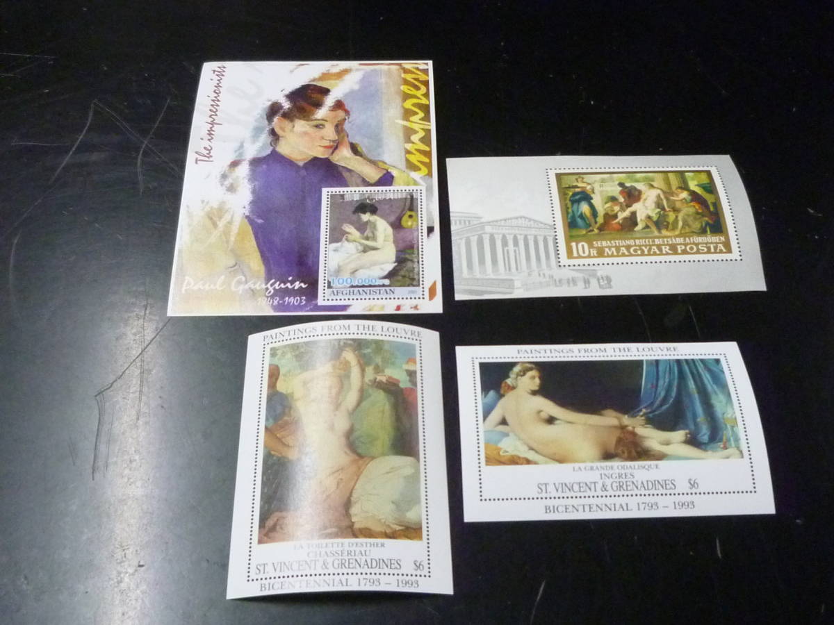 - 23 S ヌード絵画切手№358 ハンガリー・アフガニスタン・他 1993年~ 「ルーブル美術館より、他」 小型シート 計4種 未使用NH・VF