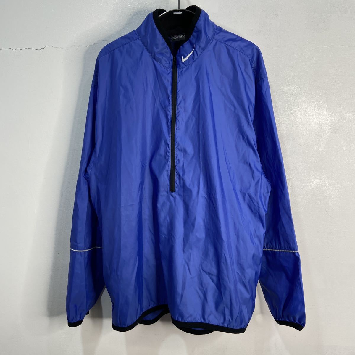 - 送料無料☆NIKE☆ハーフジップナイロンジャケット☆90s☆M☆ブルー☆スウォッシュロゴ