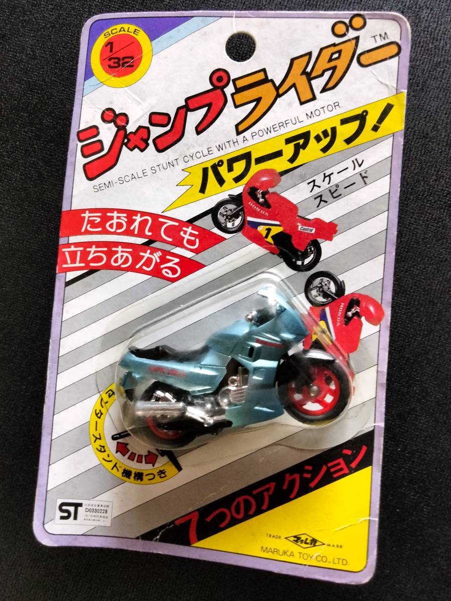 - カワサキ GPX750R ウイリー&ジャンプ たおれても立ちあがる !! 未開封 1980年代 当時品!☆ KAWASAKI BIG BIKE 1/32 SCALE 旧車バイク