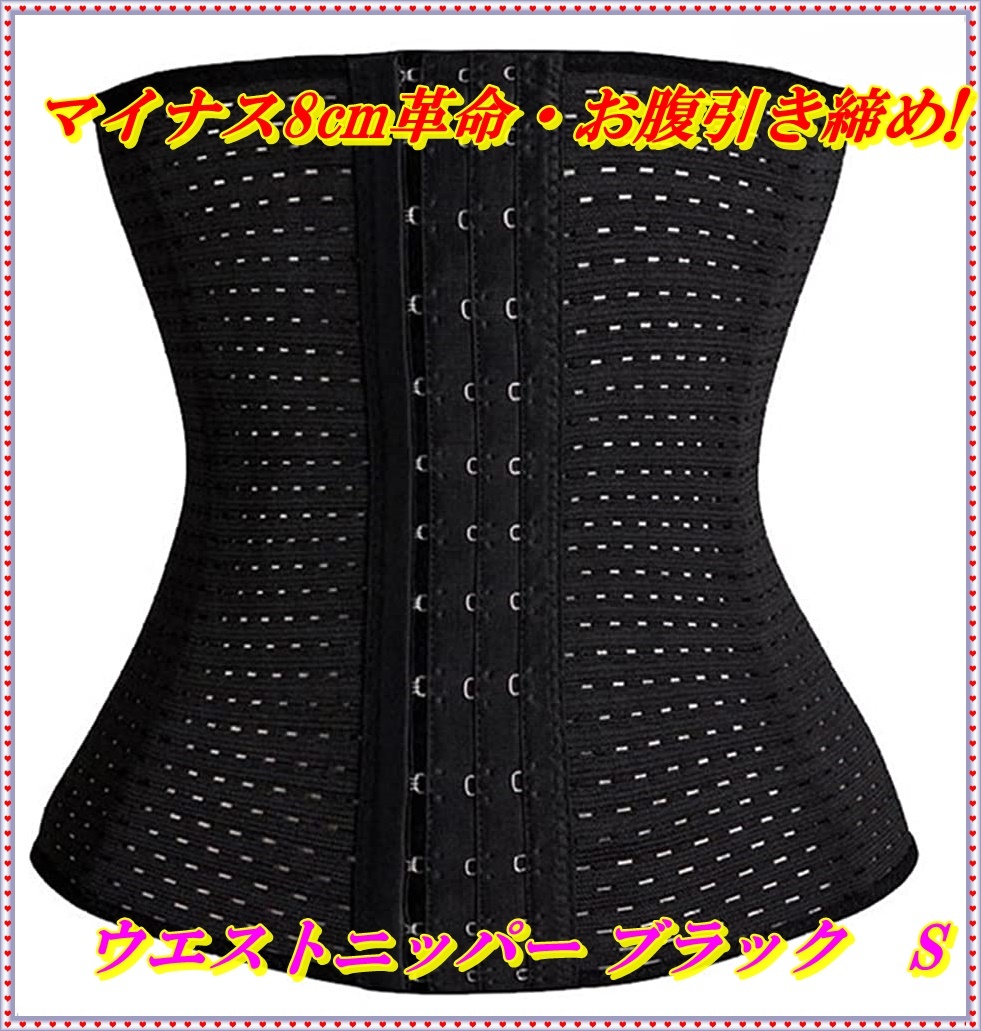 > ウエストニッパー 【マイナス8cm革命・お腹引き締め・姿勢改善】 レディース 産後 ボディシェイパー 矯正下着 腰痛サポート (ブラック, S)