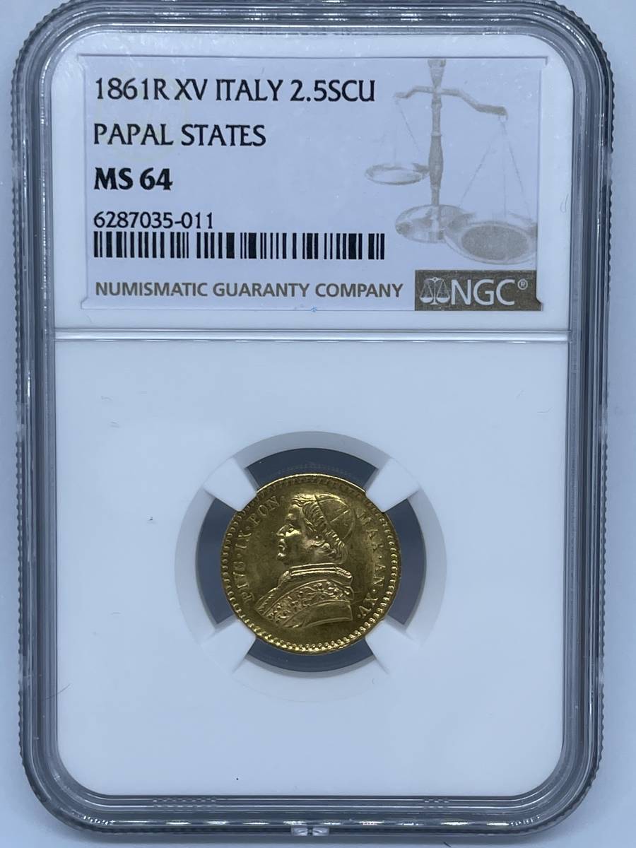 - 1861年☆イタリア 教皇領☆2.5スクーディ☆金貨☆ピウス9世☆NGC MS64