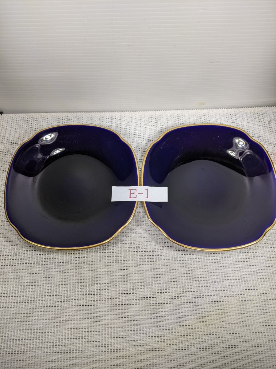 - 三郷陶器 金彩の縁取り 中皿 濃い藍色 2枚