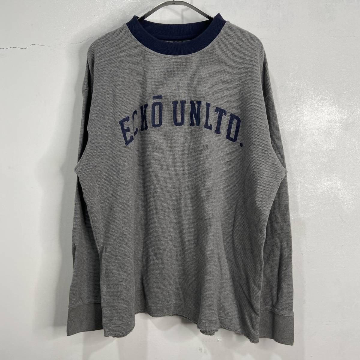 - ☆送料無料☆eckoエコー☆フロントロゴサーマルカットソー☆リンガーネック☆グレー☆c23