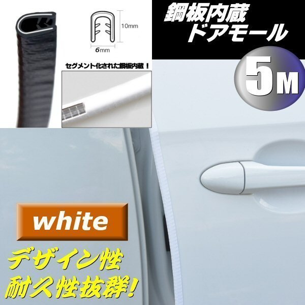 - 鋼板内蔵 ドア モール エッジ ガード 5m巻き 白 ホワイト ゴム U字型 両面テープ不要 自動車 車 傷防止