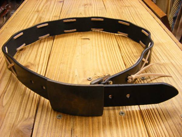 > 当店オリジナル製作!! 牛革ベルト新品[(黒ベルト)×(ナチュラル色革ひも)][XXL=約100cm][バックル2種付き]が送料無料(※レッドムーン風)