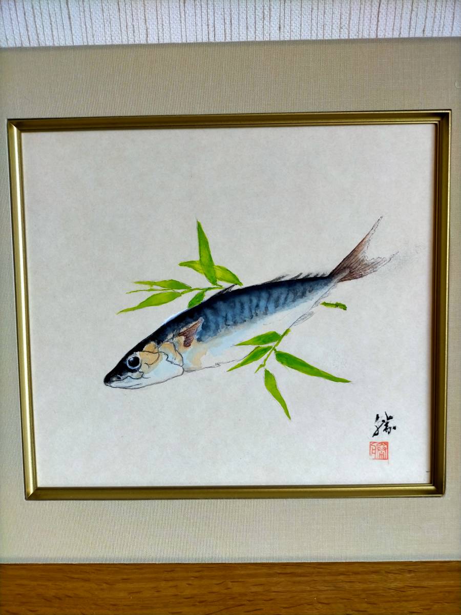 - 値下げ 松本勝 希少 鯖 日本画 水彩画 良作 落款有 額入り