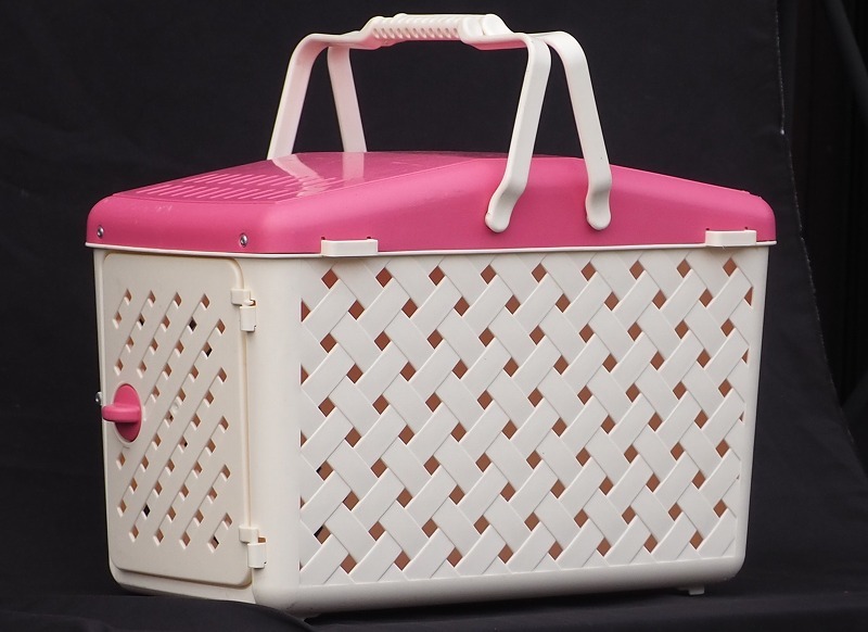 - 犬 猫 お出かけキャリー バスケット型 中古美品 可愛いキャリー 消毒済