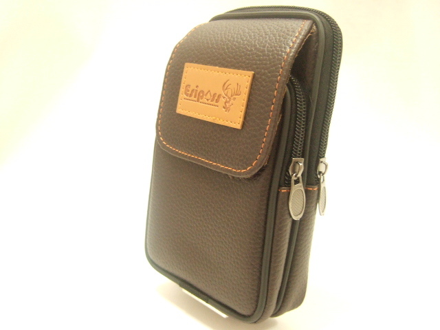 - s横浜最新 合皮♪魅惑のベルトポーチ ウエストポーチ茶 横巾約10cm 縦17cm 二層収納 メンズレディース 送料無料ξblξ ξ18