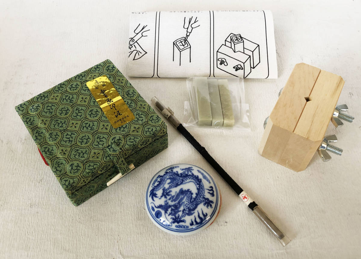 - 篆刻セット 印床 朱泥(印肉) 印刀 石印材 篆刻手引書