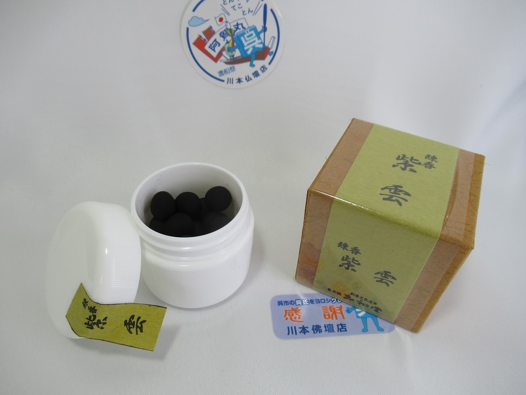 - 川本仏壇店/練香「紫雲」30粒入 玉初堂製 樹脂容器入 沈水香木 インド産白檀/茶道具 香道 煎茶 抹香 薫香 法事 茶席 焼香 香具/川本仏