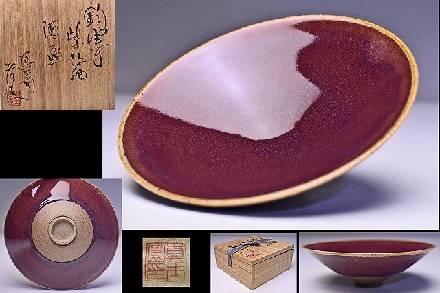 - 加藤孝俊 ★ 均窯手 紫紅釉 ぐい呑 ★ 共箱 ★ 赤紫の釉景に吸い込まれる ★ 中国 宋時代の陶磁を再現 ★ 真玉園 ★ 平盃 平杯 酒器 ★1