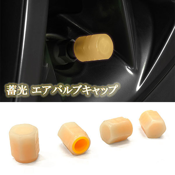 - タイヤ エアーバルブキャップ エア バルブ キャップ 4個セット 車 カー バイク 蓄光 蛍光 イエロー 送料無料
