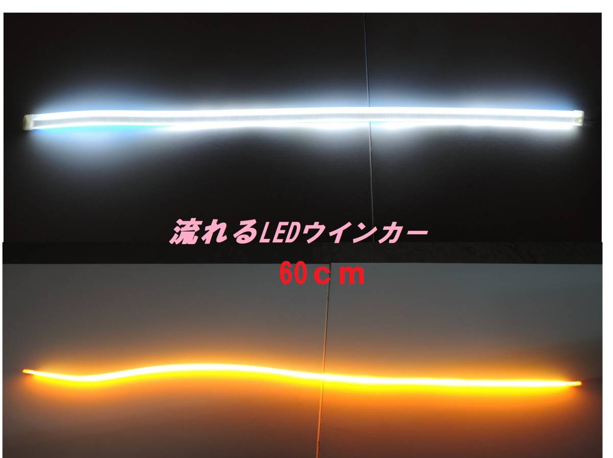 > 【送料無料】新品 LED 60cm シーケンシャルウインカー チューブ ホワイト&アンバー 流れるウインカー 2本セット