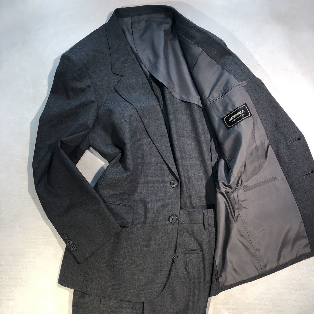 - 新品【サイズA6 L★定価5.5万円】高級2Bシングルスーツ グレー系 背抜き ノーベンツ 2タック極上の軽さ 背広セットアップ 日本製紳士服