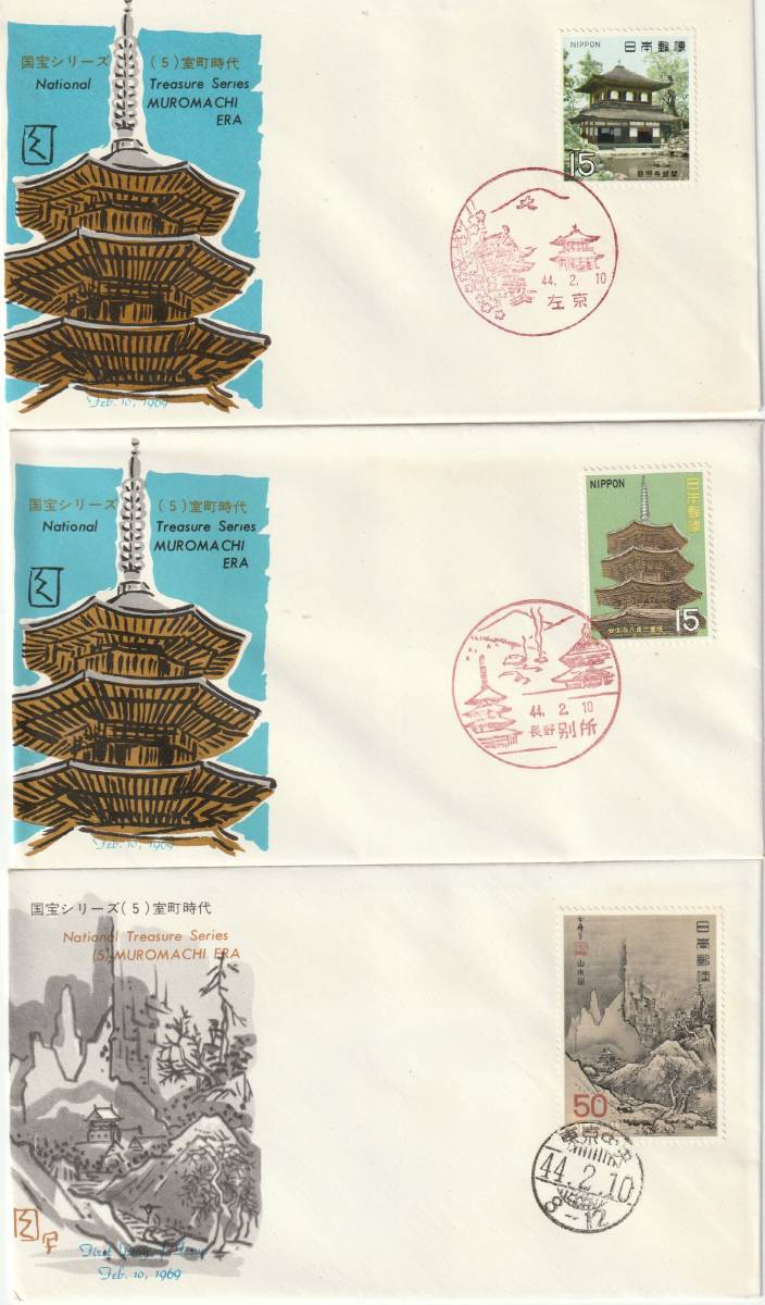 - FDC 1969年 第1次国宝シリーズ 第5集 室町時代 3種3通 BSB