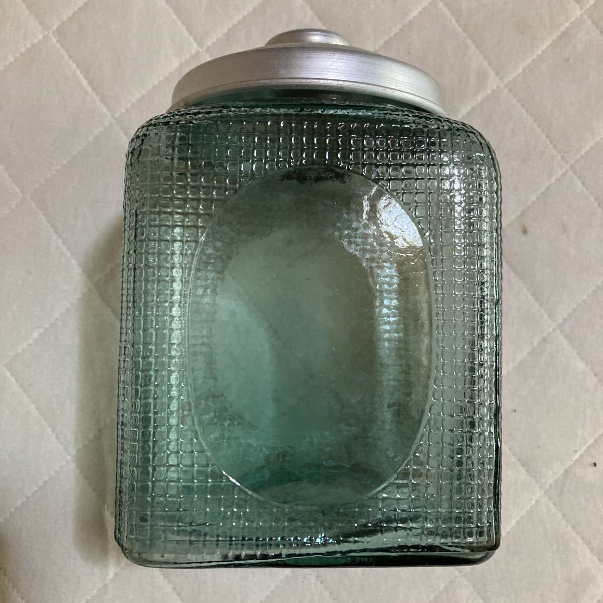 - 大正.昭和初期.レトロな古い飴屋 .瓶 .気泡が有ります.当時物.色付き硝子.完品.瓶の横幅.約11.8cm.高さ.約16cm.厚さ.約4mm.口の横幅.約10cm