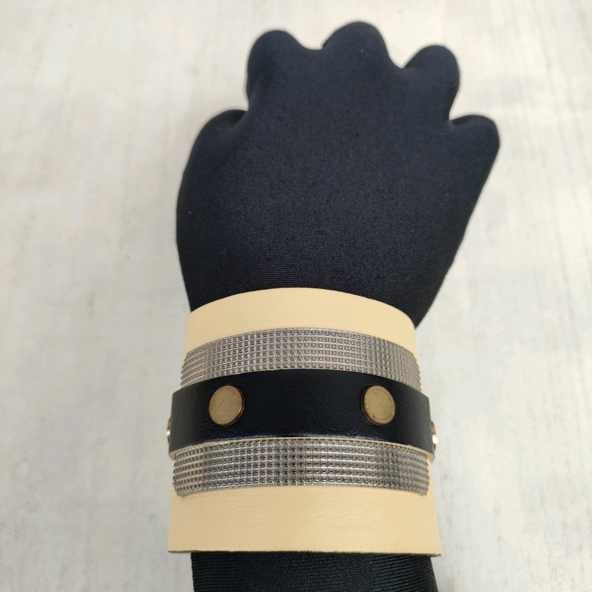 > バレンシアガBALENCIAGA/レザー × メタル/ブレス/バングル/ベージュ/RD21MM7/0033/