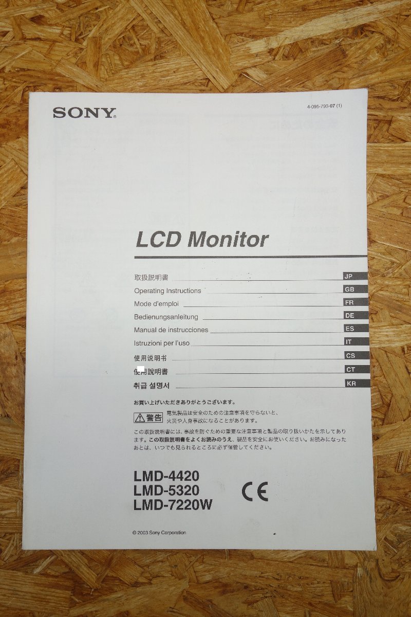 > ◎【取扱説明書のみ】SONY LCD Monitor LMD-4420 LMD-5320 LMD-7220W 取扱説明書◎T109