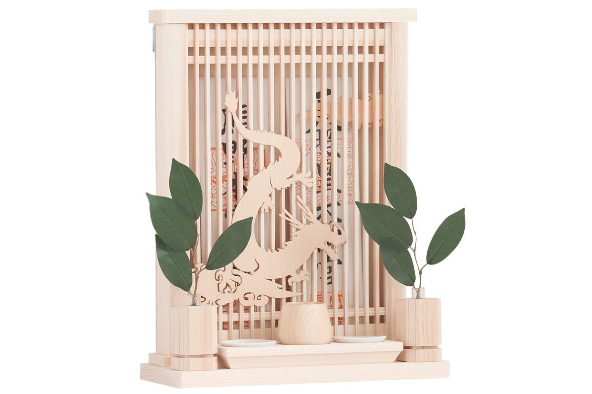 > モダン神棚 アマテラス リュウジン ミニ 天照らす龍神 箱宮 お札立て 神具セット コンパクト 壁掛け 御朱印帳 お守り入れにも