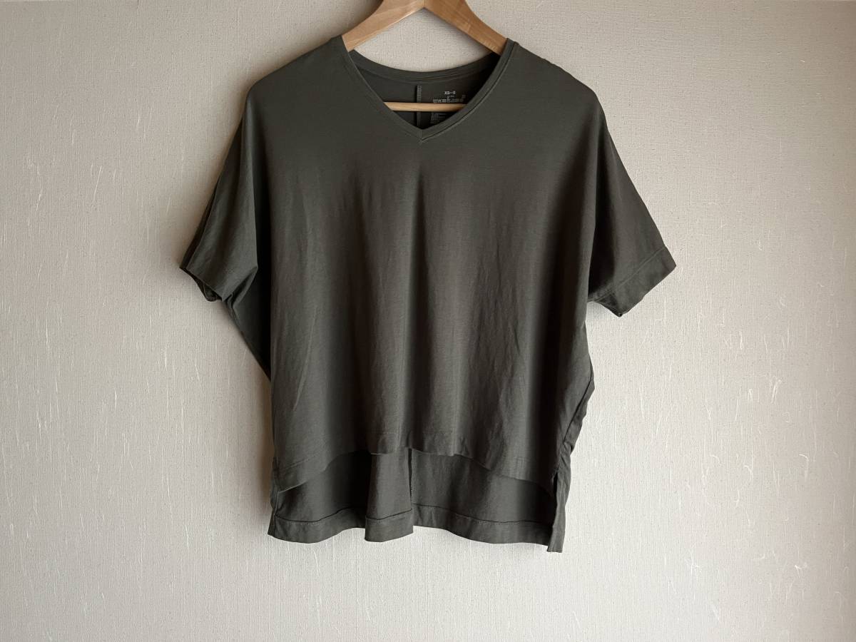 > ◆美品 MUJI 無印良品 モダール コットン ワイド ドルマン Tシャツ スモーキーグリーン とろみ ストレッチ 洗濯済み 匿名発送