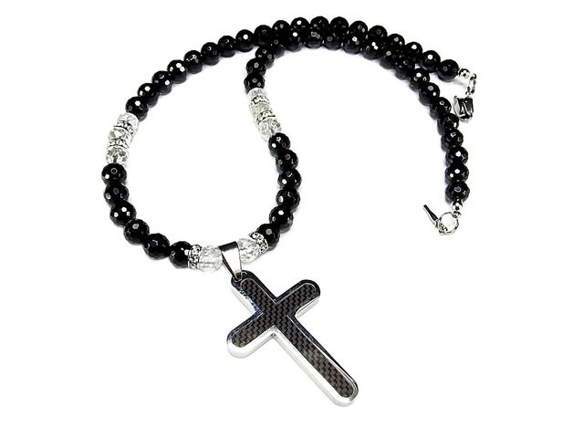 - 欧風クロス十字架ネックレス天然石オニキス水晶ステンレス製ワイヤ仕上げゴージャスプライム