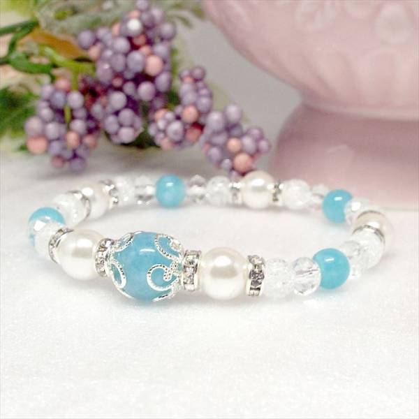 - 天然石 ブルークォーツ クラック水晶 シェルパール パワーストーンブレスレット 癒し