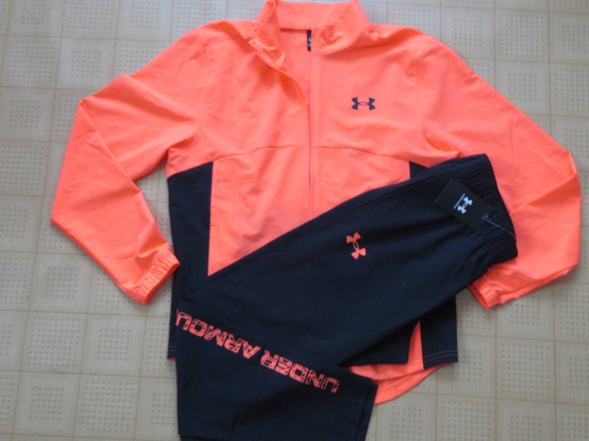 - 即決新品 LGサイズ UNDER ARMOUR ストレッチ薄手ジャージ上下セット セットアップ オレンジ/ブラック アンダーアーマー
