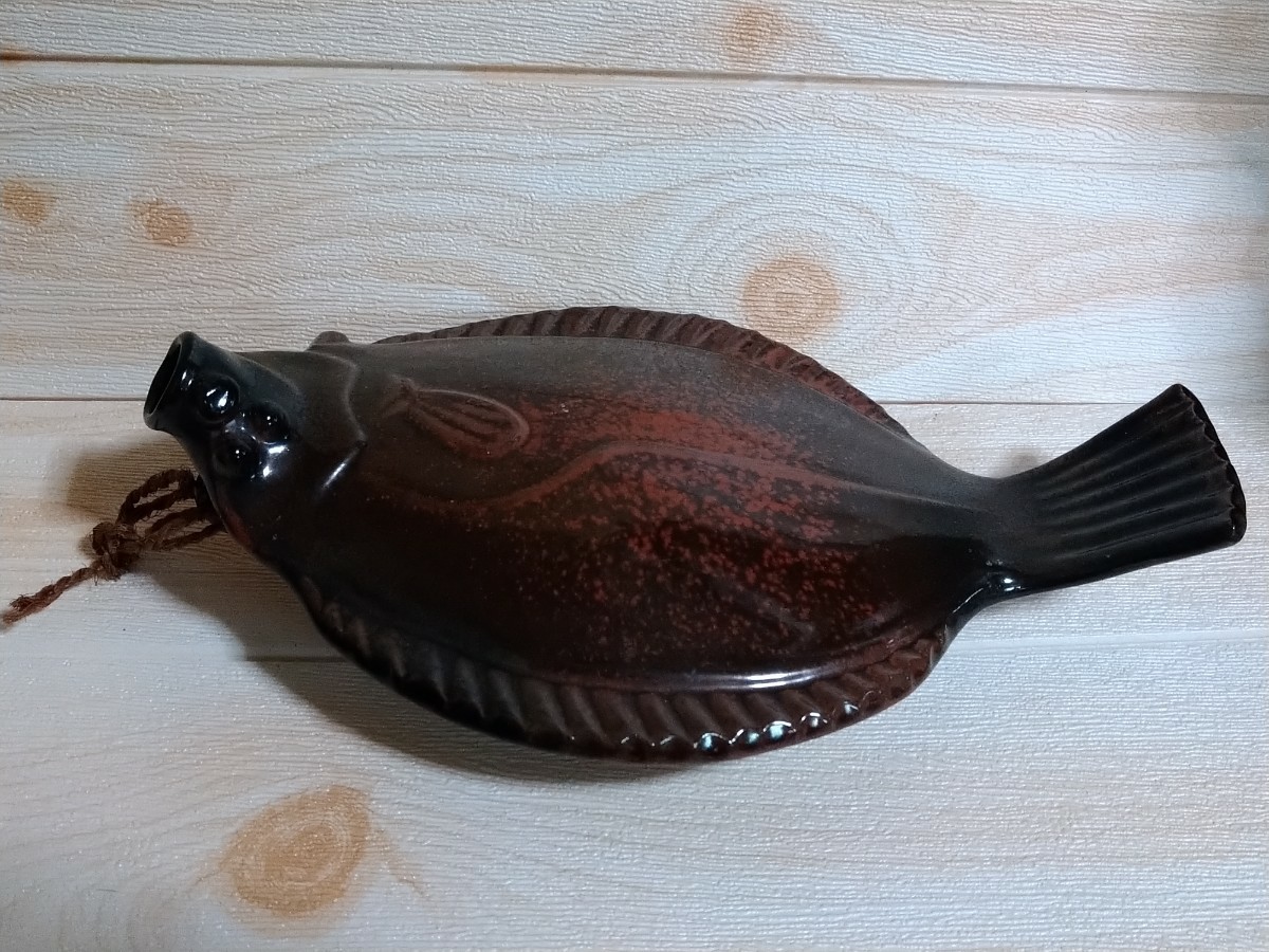 - 激レア!ヒラメ!カレイ!閉窯希少!大分県!日出焼!藤原窯!ビンテージ!コレクショングッズ!インテリア!置物!酒器!必見!テレ
