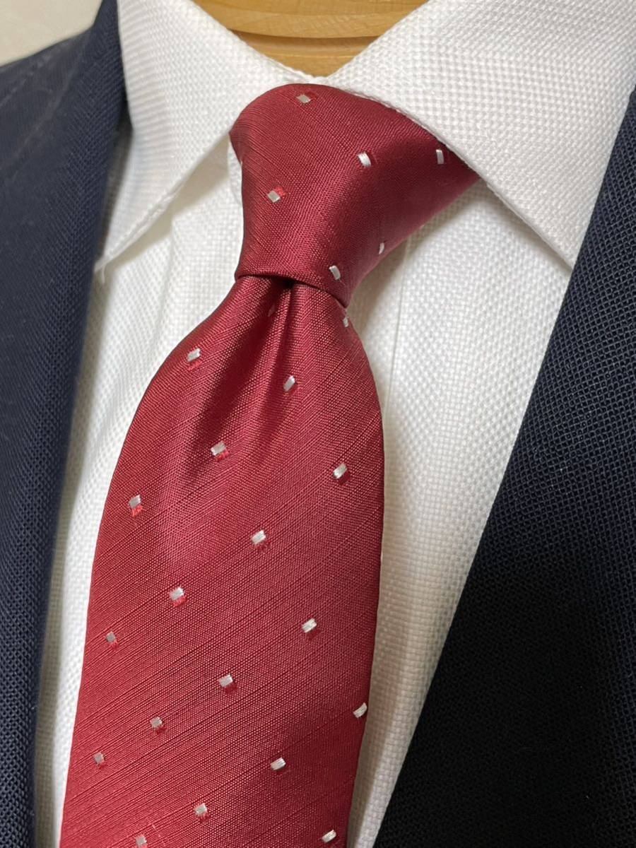 - 【美品】GIORGIO ARMANI レッドドット柄ネクタイ 大剣約8.5cm イタリア製ジョルジオアルマーニ