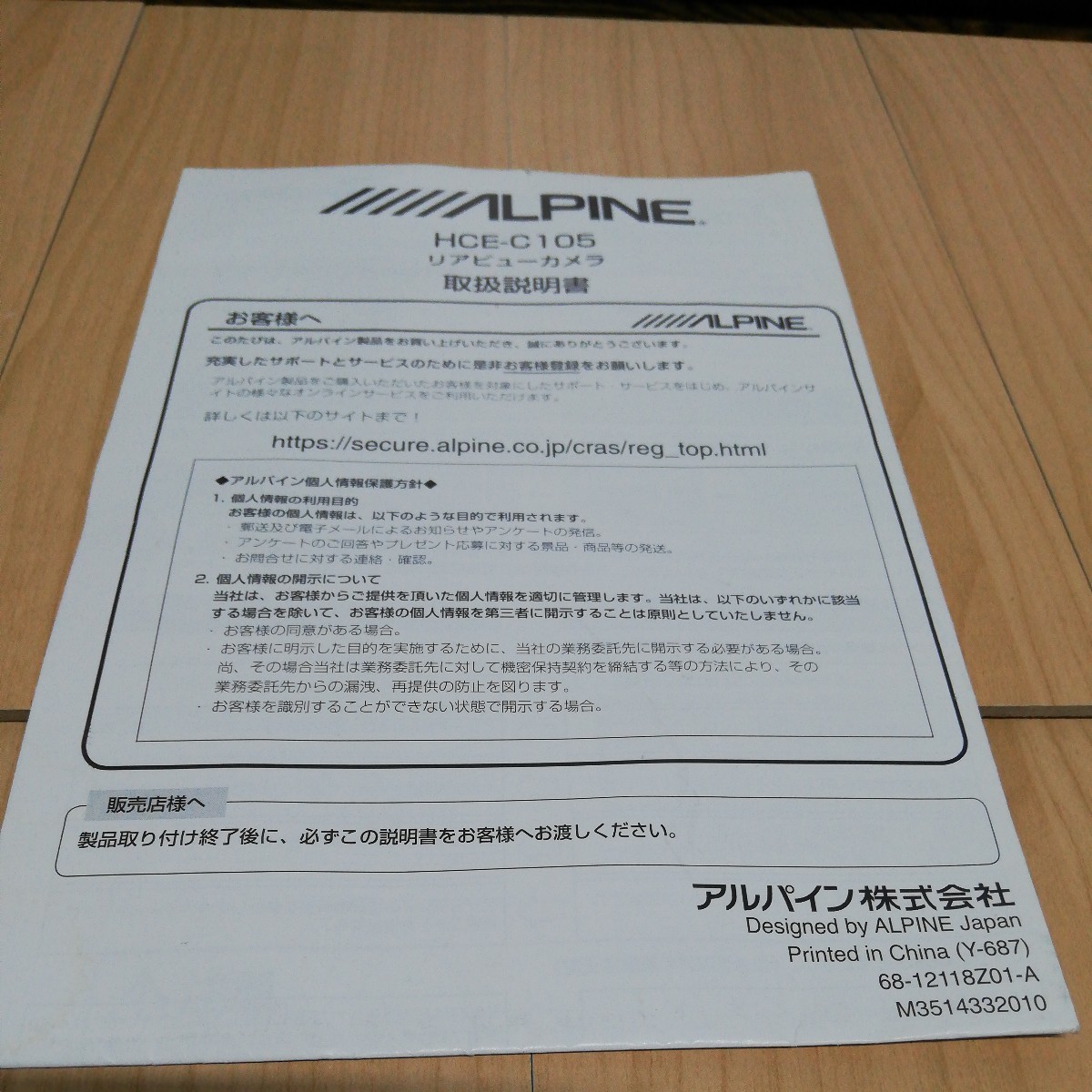 - ALPINE アルパイン 取扱説明書 HCE-C105 リアビューカメラ