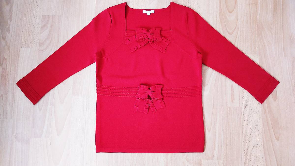 - 美品 トゥービーシック ニット セーター Ⅲ TO BE CHIC リボン フリル 上品 クリーニング済 赤