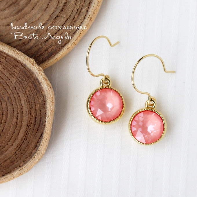 - ◇◇+angelo+貴和クリスタル 1088のピアス(p-201) Cフラミンゴイグナイト G 一粒 ピンク スワロフスキー