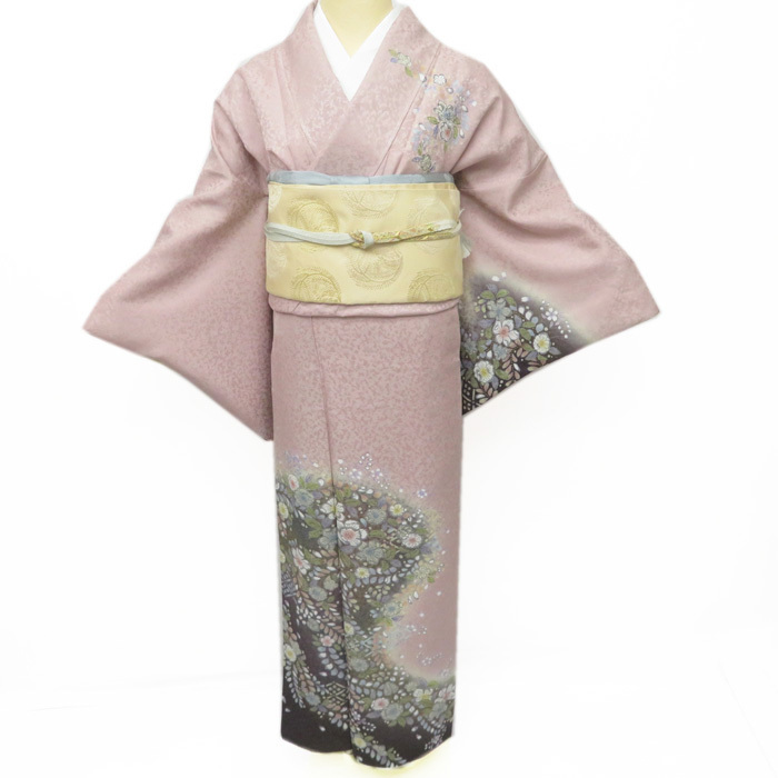 > ★きもの北條★ 辻が花模様 幻想に浮かぶ花の彩り トール 銀通し 一斤染色 訪問着 A696-10 L【新品】
