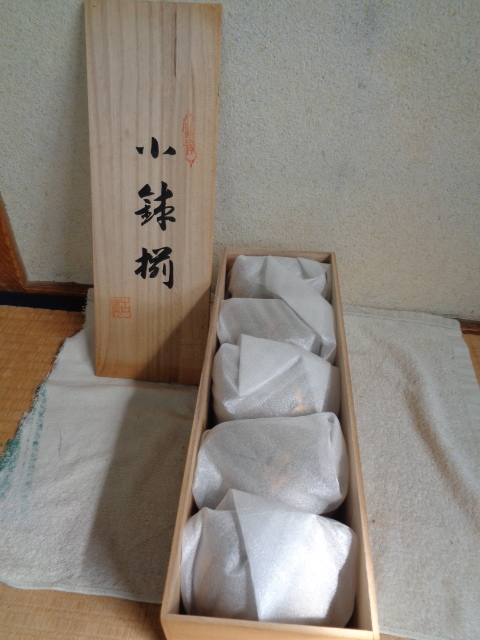 - 陶器 特選 小鉢揃-金彩さぎ絵 小鉢5個セット T8-945/日本クラフト いせん/木箱入未使用美品-長期保管品