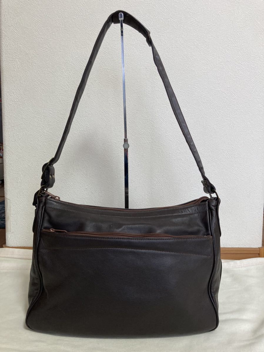 - 【激安】オールレザーショルダーバッグ 茶系 底鋲有 お洒落 使える 鍵付き 激安!