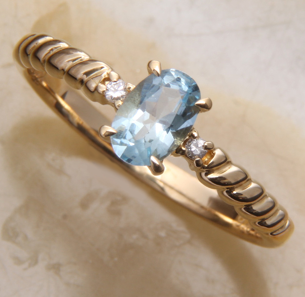 - ke9548◆磨き済 K18リング アクアマリン&ダイヤモンド 10.5号