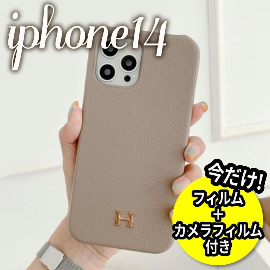 > iPhone14 ケース★きれいめ★H柄★ベージュ★くすみ★人気★韓国★インスタ