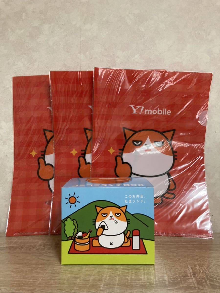 > 未使用 ワイモバイル ふてニャン ランチボックス A4クリアファイル ◆Y!mobile 弁当箱 非売品 フテニャン 限定グッズ ノベルティ