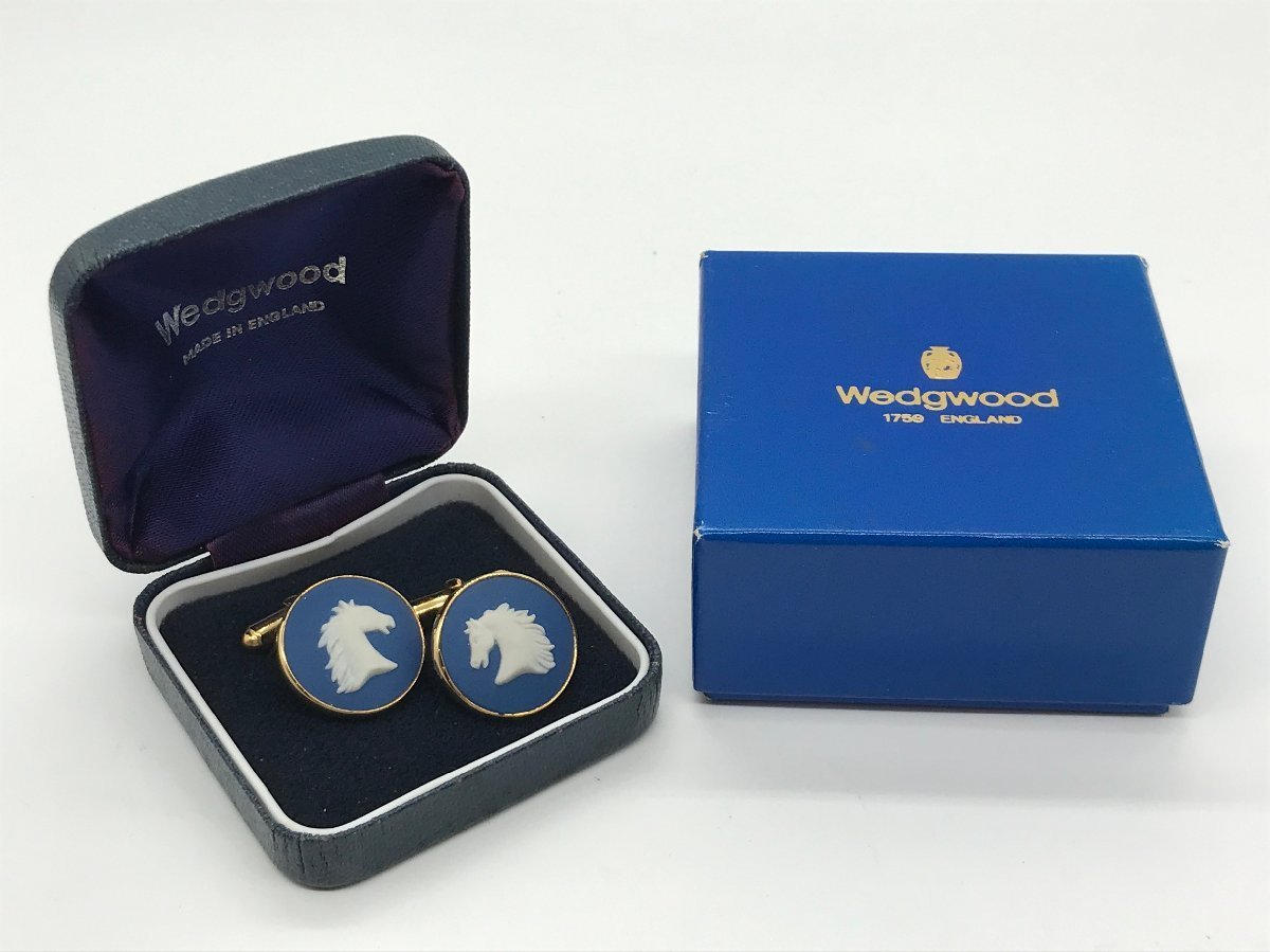 - ■【YS-1】 ウェッジウッド WEDGWOOD カフス ■ ホース 馬 ジャスパーブルー トップ2cm GP ゴールド ■ イギリス製 【同梱可能商品】K■